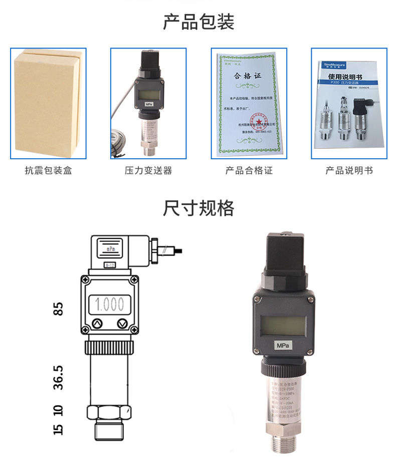 SIN-PX300型數顯壓力變送器采用無縫焊接結構,可批量化生產,經濟、可靠,具有良好的適應性,可應用于各種復雜的環境,該產品輸出形式多樣,壓力接口可提供定制,滿足您的使用需求。同時數顯壓力變送器帶有現場顯示功能,能夠更加直觀的顯示現場的壓力波動情況。廣泛應用于工業自動化設備配套以及石油、化工、冶金、電力等控制領域。